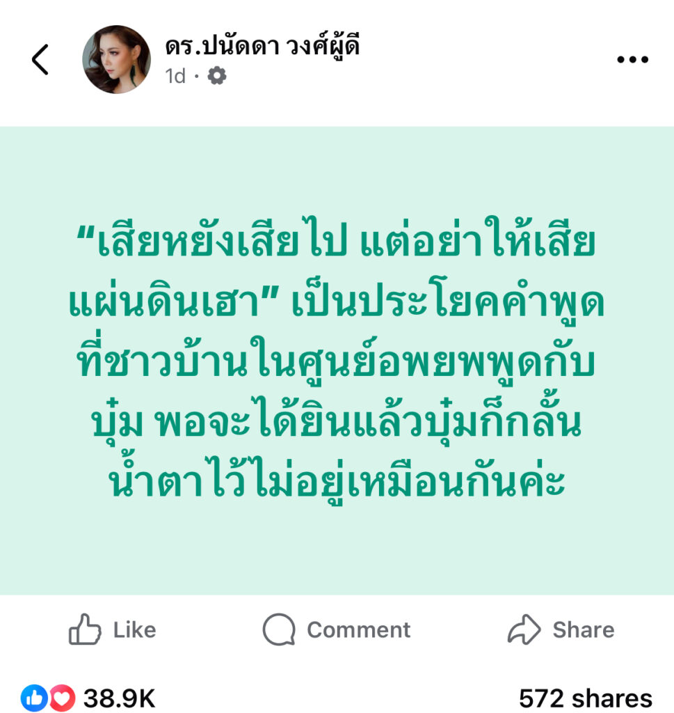 ผู้สื่อข่าวโตโจ้นิวส์รายงานว่า บุ๋ม ปนัดดา วงศ์ผู้ดี ประธานมูลนิธิองค์กรทำดี และโฆษก จิตอาสา ศก.ทบ. โพสต์ข้อความผ่านเฟซบุ๊ก ระบุว่า