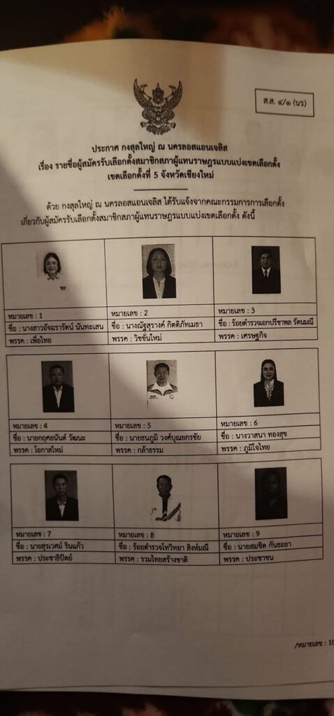 คนไทยในสหรัฐฯ เปิดภาพรายชื่อผู้สมัคร สส. เห็นหน้าชัด ยกเว้นคนของพรรคประชาชน
