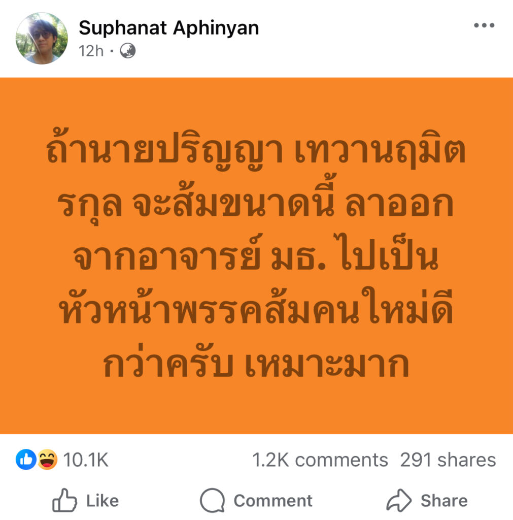 News เหมาะ! ดร.นิว แนะ อ.ปริญญา ไปเป็นหัวหน้าพรรคส้มคนใหม่ Published 1 ชั่วโมง ago on กุมภาพันธ์ 27, 2026 By Admin_Tojo Share Tweet ดร.นิว ลั่น ถ้า อ.ปริญญาจะส้มขนาดนี้ ลาออกแล้วไปเป็นหัวหน้าพรรคคนใหม่ดีกว่า ผู้สื่อข่าวโตโจ้นิวส์รายงานว่า ดร.ศุภณัฐ อภิญญาณ นักวิจัยภายใต้สถาบันวิจัย MAST Center และ คณะวิศวกรรมชีวการแพทย์ University of Arkansas ประเทศสหรัฐอเมริกา โพสต์เฟซบุ๊กระบุว่า ถ้านายปริญญา เทวานฤมิตรกุล จะส้มขนาดนี้ ลาออกจากอาจารย์ มธ. ไปเป็นหัวหน้าพรรคส้มคนใหม่ดีกว่าครับ เหมาะมาก #เพื่อไม่พลาดข่าวสารดีๆ อย่าลืมกดติดตามพวกเรา TOJO NEWS Share this:TwitterFacebookLineLike this:Like กำลังโหลด... Related Topics:#TOJONEWS #โตโจ้นิวส์Featured Up Next หมอสุรัตน์ ร่ายยาว เหตุผลสำคัญ!! ห้ามหมอโฆษณาอาหารเสริม Don't Miss ตกต่ำขั้นสุด กกต.ฟ้องปิดปากสื่อ!! Continue Reading Advertisement Advertisement Latest Trending Videos Horoscope12 นาที ago รายวันพยากรณ์ ดวงวันนี้ 28 กุมภาพันธ์ 2569 กับ อ.ดีนุ้ย พรหมญาณพยากรณ์ News1 ชั่วโมง ago เหยื่อสแกมเมอร์ โผล่อีกราย! สาว โพสต์ตาหาแฟน หลังหายตัวไปที่สระแก้ว News1 ชั่วโมง ago หมอสุรัตน์ ร่ายยาว เหตุผลสำคัญ!! ห้ามหมอโฆษณาอาหารเสริม News13 ชั่วโมง ago ไม่เคยมีที่ไหน! สอนฟรี 9 หลักสูตร ด้านเกษตรอัจฉริยะ-อาหารเพื่ออนาคต-คาร์บอนต่ำ-พลังงานสะอาด Horoscope1 วัน ago รายวันพยากรณ์ ดวงวันนี้ 27 กุมภาพันธ์ 2569 กับ อ.ดีนุ้ย พรหมญาณพยากรณ์ Horoscope2 วัน ago รายวันพยากรณ์ ดวงวันนี้ 26 กุมภาพันธ์ 2569 กับ อ.ดีนุ้ย พรหมญาณพยากรณ์ CLIP3 เดือน ago ฟังข่าวดีก่อนสิ้นปี 2568 (random clip) CLIP3 เดือน ago เช็คพลังงาน ดึงดูดความรัก Horoscope2 ปี ago ดวงความรักที่จะเกิดขึ้นกับคุณ กับ อ.สาธกา พรหมญาณ