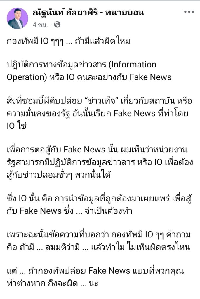 เพราะฉะนั้นข้อความที่บอกว่า กองทัพมี IO ๆๆ คำถามคือ ถ้ามี … สมมุติว่ามี … แล้วทำไม ไม่เห็นผิดตรงไหน