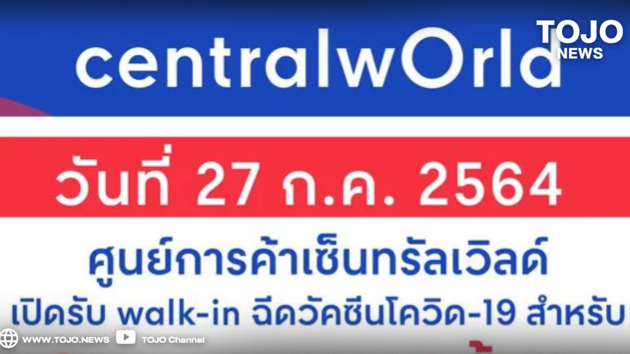 ผู้สื่อข่าวโตโจ้นิวส์รายงานว่า วันที่ 27 ก.ค. 2564 ศูนย์ฉีดวัคซีน ณ ศูนย์การค้าเซ็นทรัลเวิลด์ เปิดรับ Walk-in ฉีดวัคซีนโควิด-19 สำหรับ
