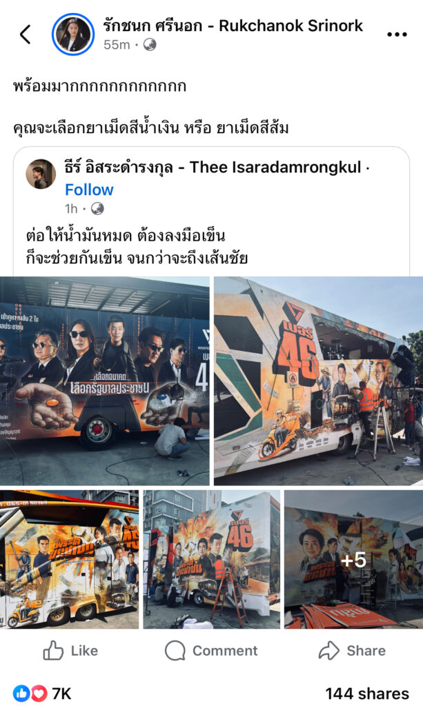 News ตึงจัด! สมเป็นพรรคประชาชน รถแห่เบอร์ 46 แต่ละรูปพีค!! Published 2 ชั่วโมง ago on มกราคม 28, 2026 By Admin_Tojo Share Tweet มาแล้ว เผยโฉมรถแห่พรรคประชาชน ก่อนโค้งสุดท้าย ไอซ์ รักชนก แชร์ พร้อมถามสั้นๆ ผู้สื่อข่าวโตโจ้นิวส์รายงานว่า นายธีร์ อิสระดำรงกุล ผู้สมัคร สส.บัญชีรายชื่อพรรคประชาชน โพสต์รูปภาพรถแห่พรรคประชาชน ที่ดึงดูดสายตา ด้วยการตกแต่งรูปสมาชิกพรรคในรูปแบบต่างๆ พร้อมข้อความระบุว่า ต่อให้น้ำมันหมด ต้องลงมือเข็นก็จะช่วยกันเข็น จนกว่าจะถึงเส้นชัย ทางด้าน นางสาวรักชนก ศรีนอก ผู้สมัคร สส.บัญชีรายชื่อ พรรคประชาชน แชร์โพสต์ดังกล่าว พร้อมข้อความระบุว่า พร้อมมากกกกกกกกกกกกคุณจะเลือกยาเม็ดสีน้ำเงิน หรือ ยาเม็ดสีส้ม #เพื่อไม่พลาดข่าวสารดีๆ อย่าลืมกดติดตามพวกเรา TOJO NEWS Share this:TwitterFacebookLineLike this:Like กำลังโหลด... Related Topics:#TOJONEWS #โตโจ้นิวส์Featured Up Next หมอสุรัตน์ ฟาดเรียบ! มือเผา มันมีลูกหรือเปล่าหรือ ตัวมันก็สูดฝุ่นมาแต่เด็กจนสมองโง่!! Don't Miss สุดช้ำ!! หมอจิรรุจน์ ขอวัคซีน IPD ฟรีให้เด็กไทย หลังมีเคสสูญเสียเพราะโรคปอดซ้ำแล้วซ้ำเล่า Continue Reading Advertisement Advertisement Latest Trending Videos News58 นาที ago สหัสวัต คาใจ! บ้านใหญ่ชลบุรี…. หรือว่ามีใครหักดีล?? News2 ชั่วโมง ago หมอสุรัตน์ ฟาดเรียบ! มือเผา มันมีลูกหรือเปล่าหรือ ตัวมันก็สูดฝุ่นมาแต่เด็กจนสมองโง่!! News2 ชั่วโมง ago ตึงจัด! สมเป็นพรรคประชาชน รถแห่เบอร์ 46 แต่ละรูปพีค!! Horoscope3 วัน ago ดวงสัปดาห์นี้ วันที่ 26 ม.ค. – 1 ก.พ. 69 โดย หมอเต็มมี่ไพ่เจ้าหญิงเลอนอร์มองค์ News2 วัน ago ตรีนุช เอาด้วย เปิดทาง!! ประกันสังคมตั้งมา 31 ปีแล้ว ถึงเวลาปฏิรูป News21 ชั่วโมง ago คณะซิสเตอร์ 12 โรงเรียนสังกัดคณะรักกางเขน แห่งจันทบุรี พลิกโฉมคุณภาพการศึกษาไทยด้วย Active Learning GPAS 5 Steps CLIP2 เดือน ago ฟังข่าวดีก่อนสิ้นปี 2568 (random clip) CLIP2 เดือน ago เช็คพลังงาน ดึงดูดความรัก Horoscope2 ปี ago ดวงความรักที่จะเกิดขึ้นกับคุณ กับ อ.สาธกา พรหมญาณ
