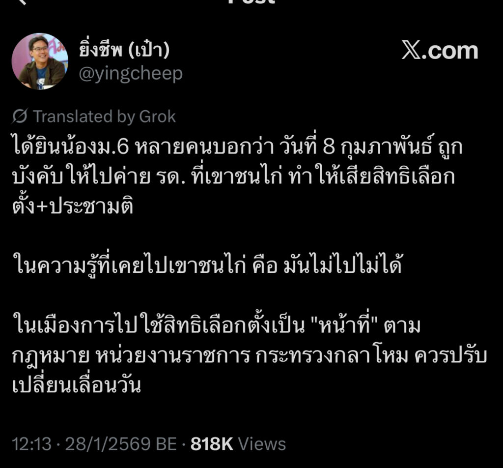ได้ยินน้องม.6 หลายคนบอกว่า วันที่ 8 กุมภาพันธ์ ถูกบังคับให้ไปค่าย รด. ที่เขาชนไก่ ทำให้เสียสิทธิเลือกตั้ง+ประชามติ