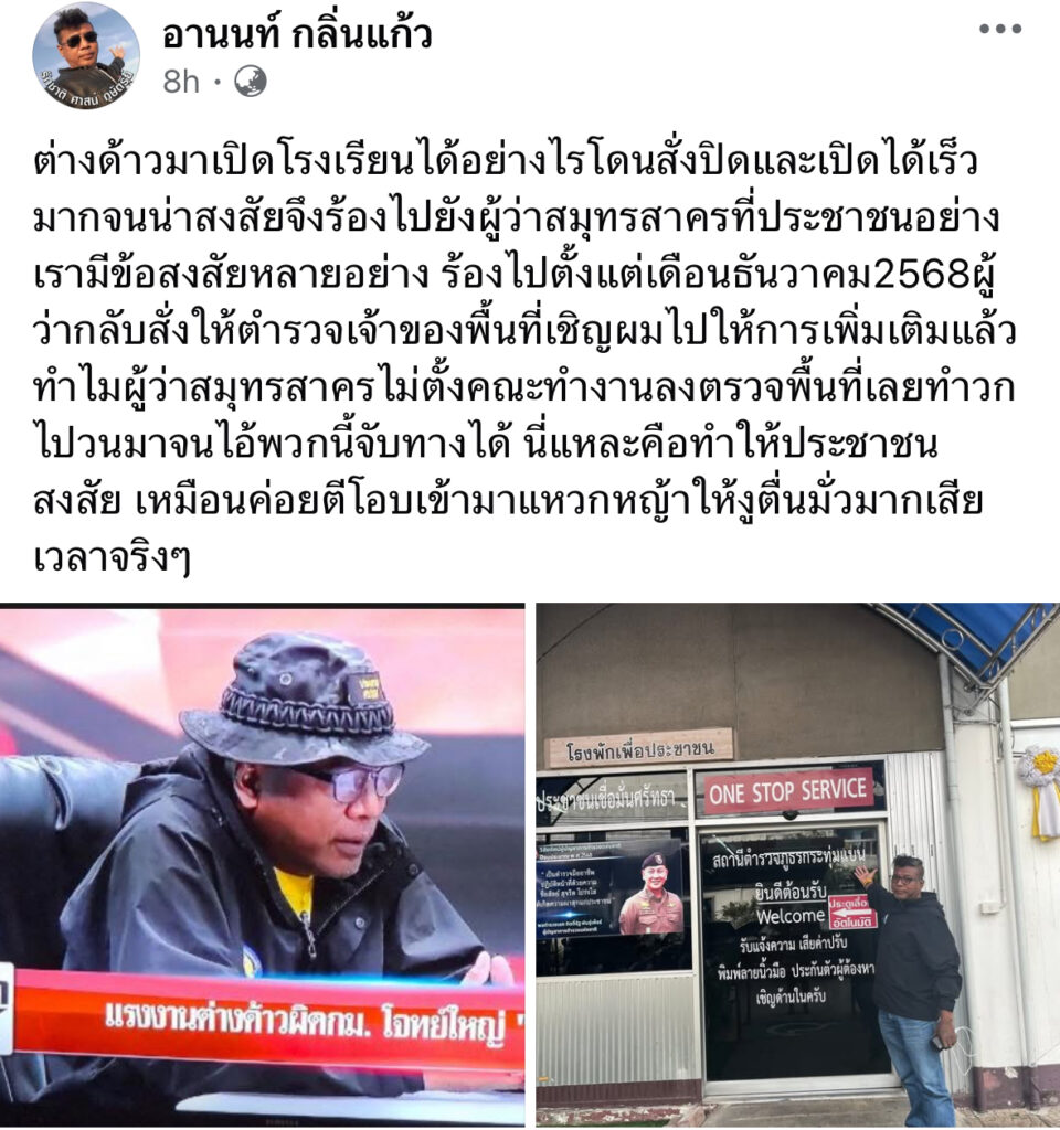อานนท์ กลิ่นแก้ว แฉ ต่างด้าวเปิดโรงเรียนแถวสมุทรสาคร ถาม ทำไมผู้ว่าฯ ไม่ตั้งคณะทำงานสอบสวน