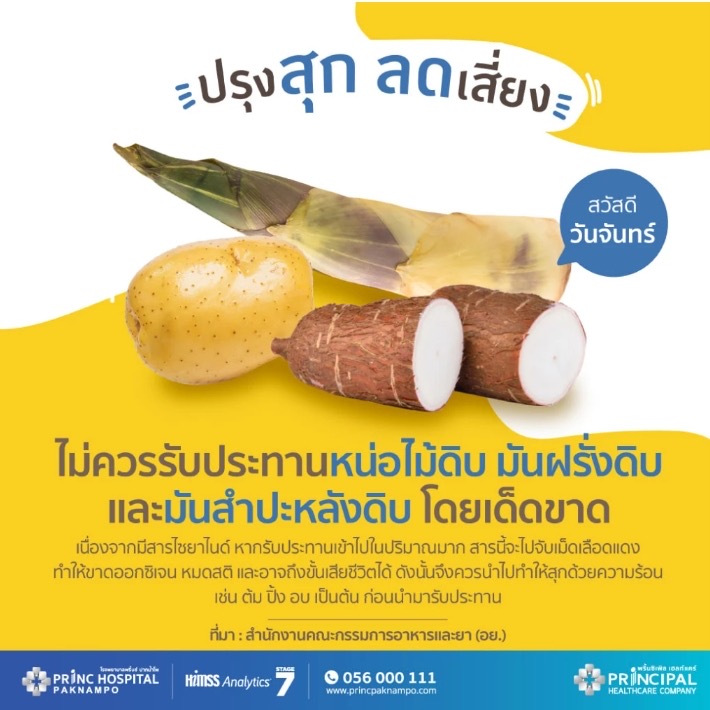 “หน่อไม้ดิบ – มันสำปะหลังดิบ มีสารพิษไซนาไนด์ … ควรทำให้สุกก่อนรับประทานครับ”