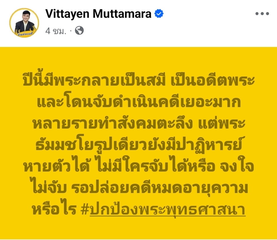 แต่พระธัมมชโยรูปเดียวยังมีปาฏิหารย์หายตัวได้ ไม่มีใครจับได้หรือ จงใจไม่จับ รอปล่อยคดีหมดอายุความหรือไร ปกป้องพระพุทธศาสนา