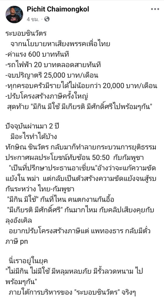 ภายใต้การบริหารของ “ระบอบชินวัตร” จริงๆ