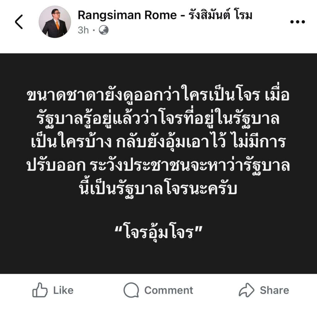 รังสิมันต์ โรม ลั่น ชาดายังดูออกใครเป็นใคร ถ้ารัฐบาลยังอุ้มไว้ ระวัง! โจรอุ้มโจร