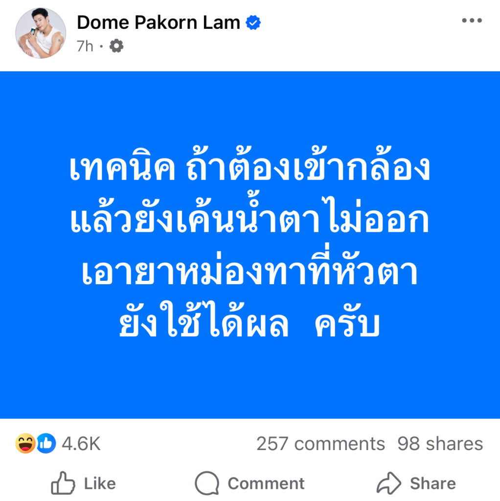 โดม ขอแนะ เข้ากล้องแล้วน้ำตาไม่ไหว เอายาหม่องทาได้