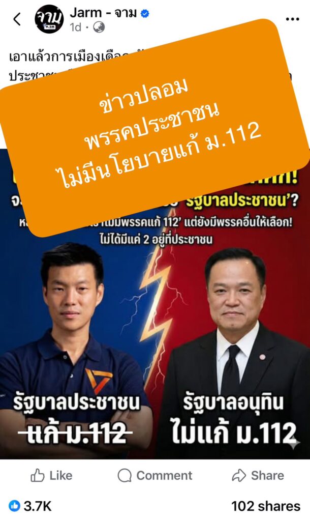 จึงเป็นไปไม่ได้ที่พรรคประชาชนจะมีนโยบายในการแก้ไขกฎหมายอาญามาตรา 112 เพื่อใช้ในการ เลือกตั้งครั้งนี้