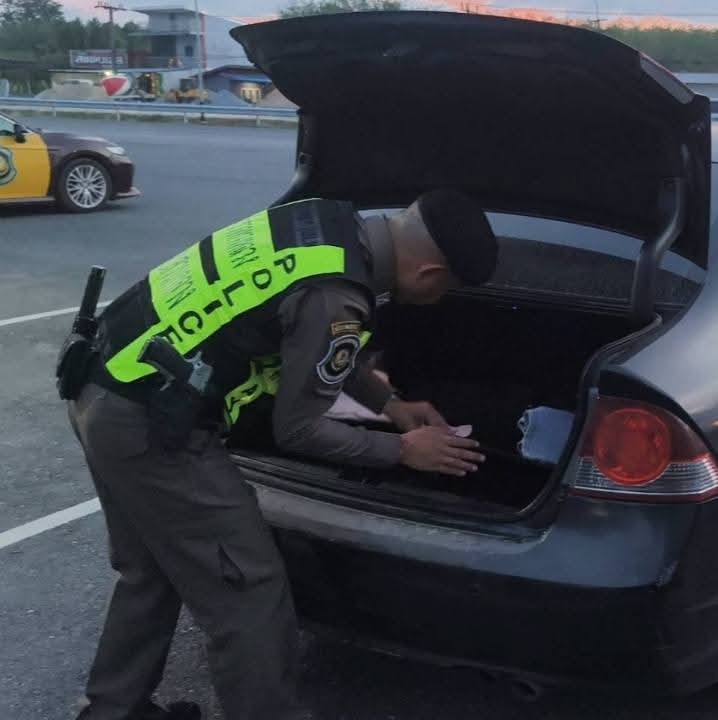 ผู้สื่อข่าวโตโจ้นิวส์รายงานว่า ตำรวจทางหลวงนครศรีธรรมราชออกตรวจ พบรถเก๋งติดป้ายทะเบียนผิดสังเกต จึงเรียกตรวจ