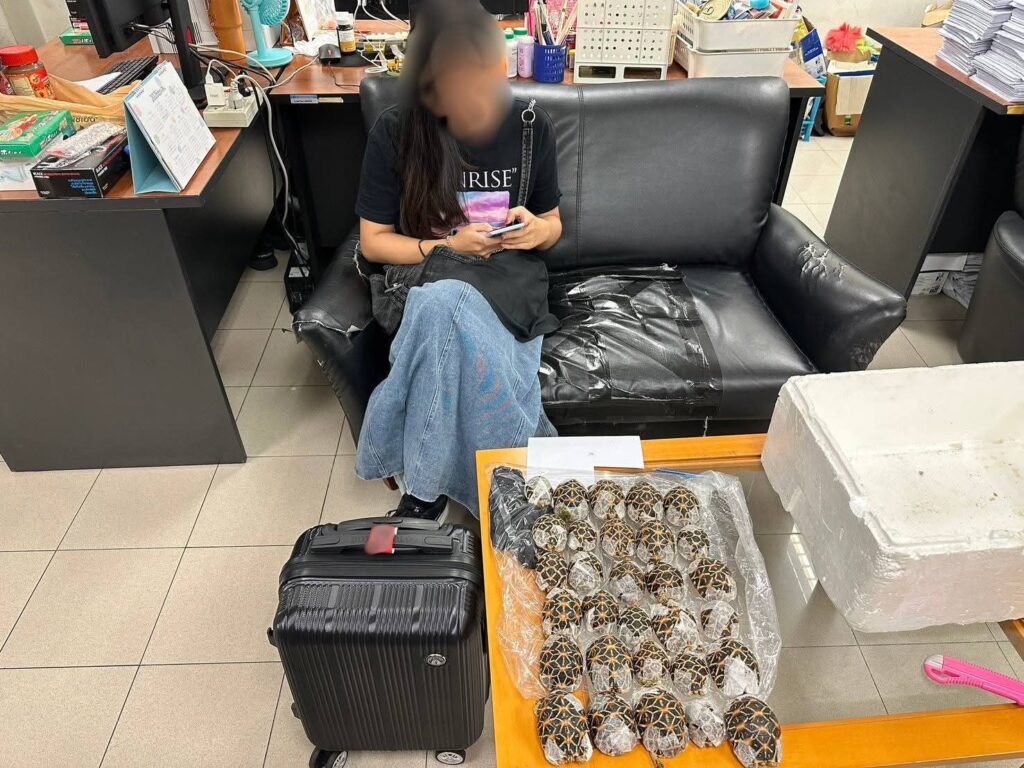ศุลกากร จับกุมหญิงชาวไต้หวัน พยายามลักลอบขนเต่าดาวอินเดียออกนอกประเทศ