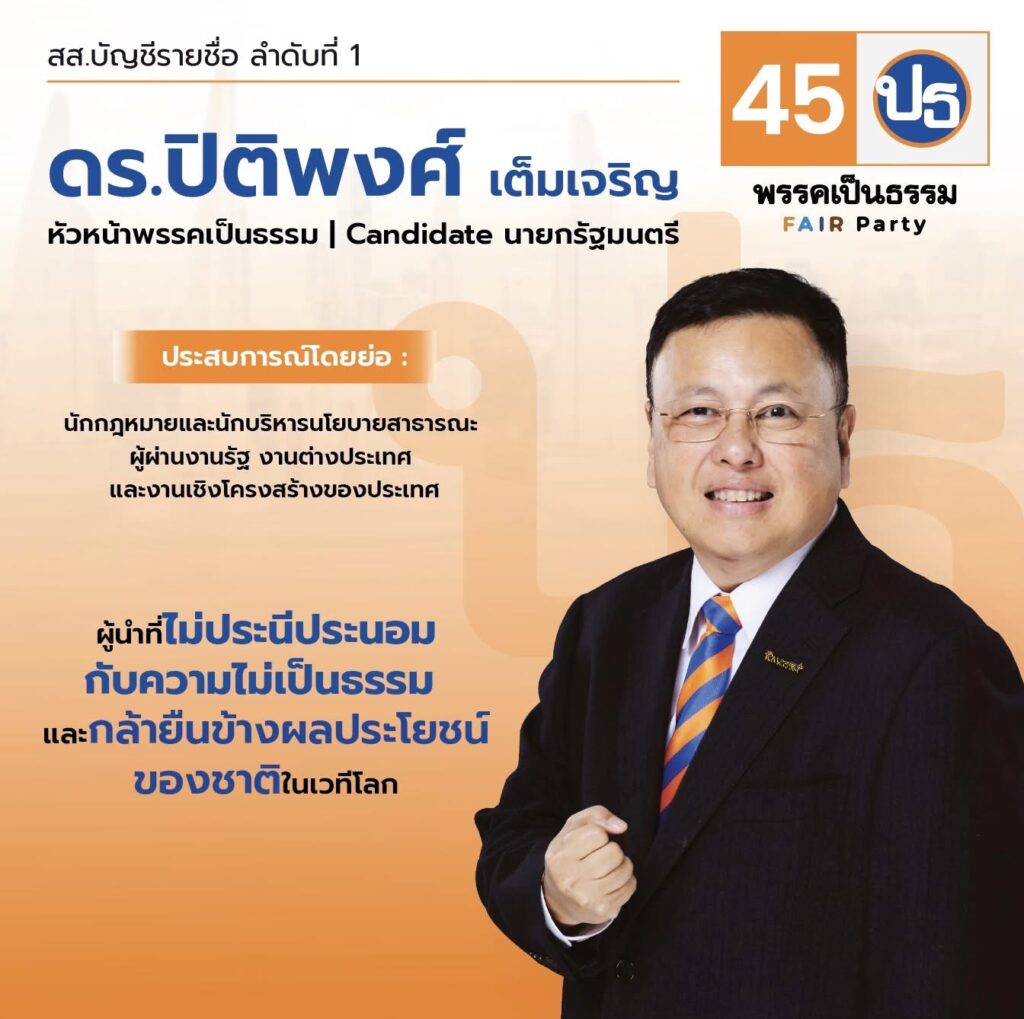 พรรคเป็นธรรม | ปาร์ตี้ลิสต์ เบอร์ 45
