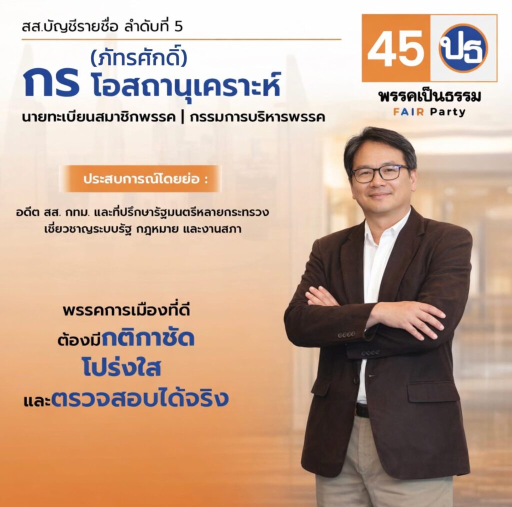 Party List พรรคเป็นธรรม เบอร์ 45