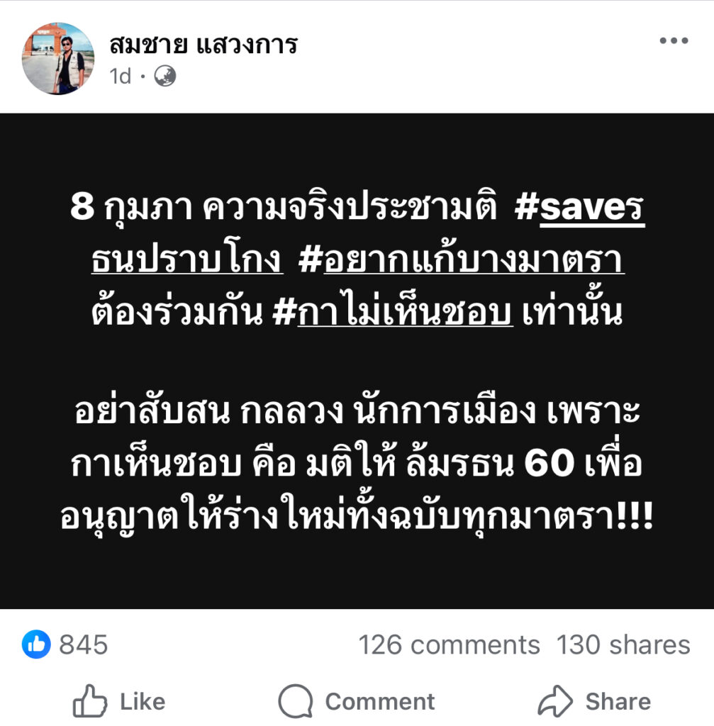 สมชาย ติด #saveรธน.ปราบโกง อย่าหลงกาเห็นชอบยกร่างใหม่ทั้งฉบับ!