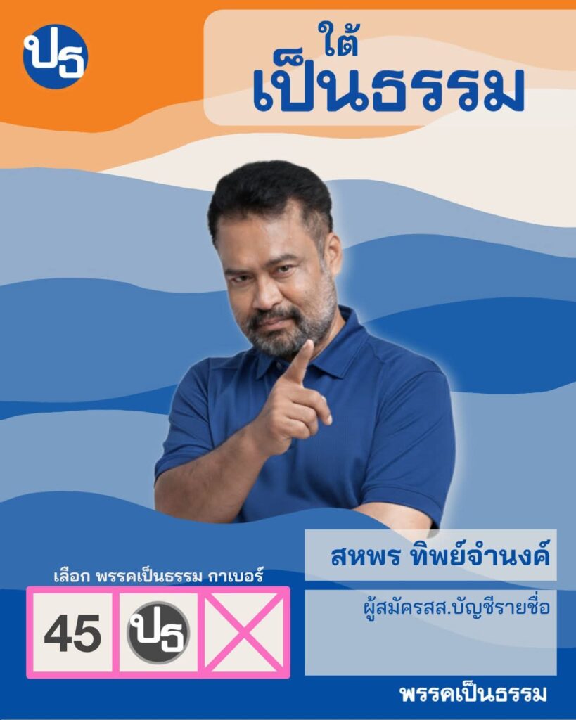 ผู้สื่อข่าวโตโจ้นิวส์รายงานว่า นายสหพร ทิพย์จำนงค์ ผู้สมัครสส.บัญชีรายชื่อพรรคเป็นธรรม ระบุว่า…