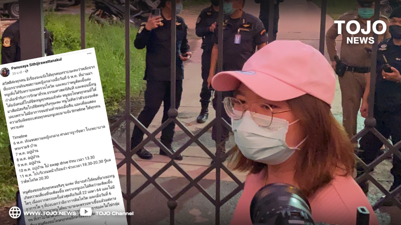 ผู้สื่อข่าวโตโจ้นิวส์รายงานว่า วันที่12พ.ค.64 น.ส.ปนัสยา สิทธิจิระวัฒนากุล หรือ รุ้ง แกนนำราษฎร โพสต์ข้อความระบุว่า สวัสดีค่ะทุกคน มีเรื่องจะแจ้งให้ทุกคนทราบนะคะว่าหลังจากที่ออกจากทัณฑสถานหญิงกลางเมื่อวันที่ 6 พ.ค. ที่ผ่านมา หนูเพิ่งได้รับทราบผลตรวจโควิด และพบว่าหนูติดเชื้อค่ะ กำลังเข้ารับการรักษาที่รพ.ธรรมศาสตร์ทันที และตอนนี้หนูได้แจ้งคนที่ใกล้ชิดหนูทุกคนแล้วค่ะ หนูขอโทษทุกคนที่ได้มาสัมผัสหรือใกล้ชิดหนูจริงๆนะคะ หนูไม่คิดว่าตัวเองจะติดเลยเพราะไม่มีอาการจนช่วงค่ำของเมื่อคืน