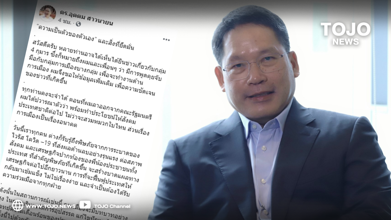 ผู้สื่อข่าวโตโจ้นิวส์รายงานว่า นายอุตตม สาวนายน อดีตรัฐมนตรีว่าการกระทรวงการคลัง โพสต์เฟซบุ๊กส่วนตัว ระบุว่า “ความเป็นตัวของตัวเอง” และสิ่งที่ยึดมั่นสวัสดีครับ หลายท่านอาจได้เห็นได้ยินข่าวเกี่ยวกับกลุ่ม 4 กุมาร ซึ่งก็หมายถึงผมและเพื่อนๆ ว่า มีการพูดคุยจับมือกับกลุ่มการเมืองบางกลุ่ม เพื่อจะทำงานด้านการเมือง ผมจึงขอให้ข้อมูลเพิ่มเติม เพื่อความชัดเจนของข่าวที่เกิดขึ้น