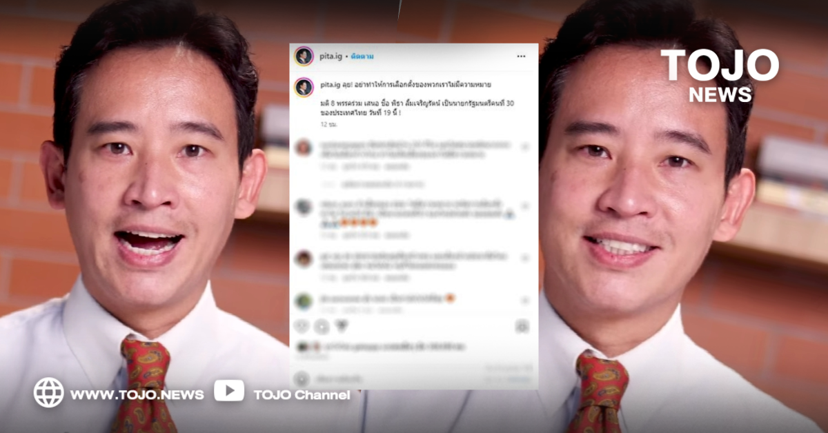 ผู้สื่อข่าวโตโจ้นิวส์รายงานว่า นายพิธา ลิ้มเจริญรัตน์ ส.ส.บัญชีรายชื่อ ในฐานะหัวหน้าพรรคก้าวไกล และแคนดิเดตนายกรัฐมนตรีพรรคก้าวไกล โพสต์ข้อความผ่านอินสตาแกรม pita.IG โดยระบุว่า ลุย! อย่าทำให้การเลือกตั้งของพวกเราไม่มีความหมาย