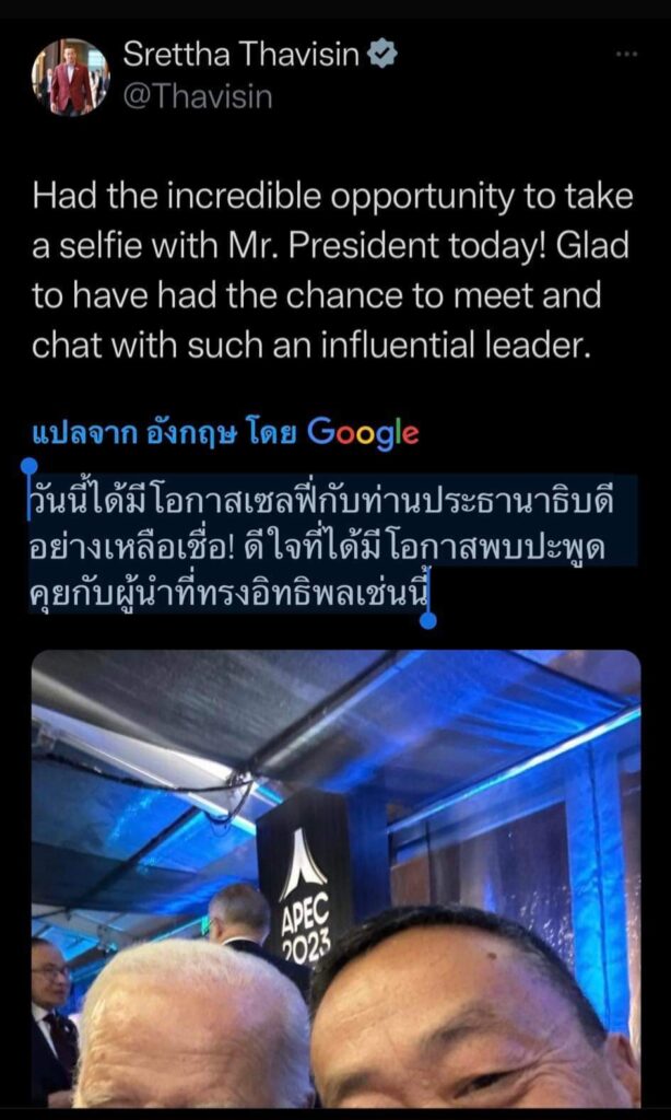 “วันนี้ได้มีโอกาสเซลฟี่กับท่านประธานาธิบดีอย่างเหลือเชื่อ! ดีใจที่ได้มีโอกาสพบปะพูดคุยกับผู้นำที่ทรงอิทธิพลเช่นนี้” พร้อมกับโชว์ภาพถ่ายเซลฟี่กับ นายโจ ไบเดน ประธานาธิบดีสหรัฐอเมริกา