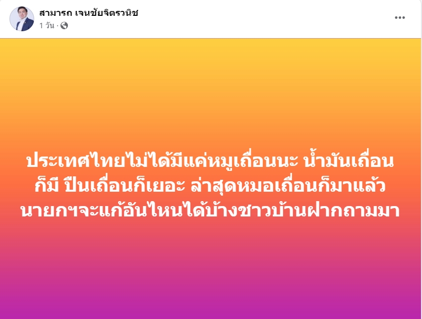 ทั้งนี้ นายสามารถ เจนชัยจิตรวนิช อดีตผู้ช่วยรัฐมนตรีว่าการกระทรวงยุติธรรม โพสต์แสดงความเห็น ในเรื่องนี้ โดยท้วงติงไปที่ตัวนายกฯ ด้วย โดยระบุว่า….