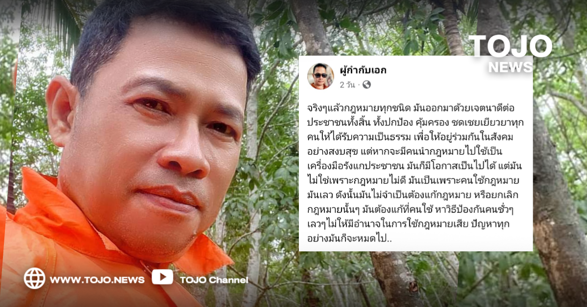 ผู้สื่อข่าวโตโจ้นิวส์รายงานว่า พ.ต.อ.เอกราช หุ่นงาม หรือ ผู้กำกับเอก อดีตผู้สมัคร ส.ส.ประจวบคีรีขันธ์ โพสต์ผ่านเฟซบุ๊กระบุว่า…