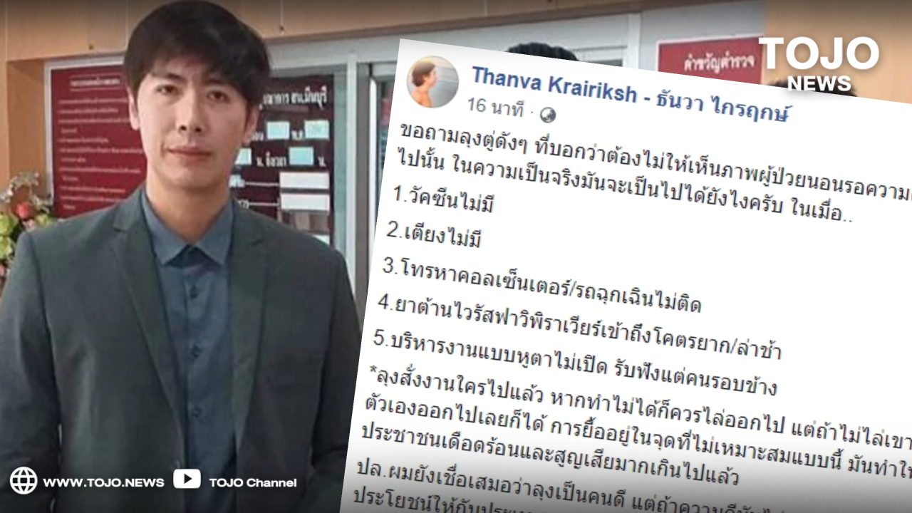 ผู้สื่อข่าวโตโจ้นิวส์รายงานว่า วันที่ 23 ก.ค.64 นายธันวา ไกรฤกษ์ อดีตผู้สมัคร ส.ส.กทม.พรรคพลังประชารัฐ ปัจจุบันย้ายไปอยู่กับพรรคกล้า ระบุว่า ขอถามลุงตู่ดังๆ ที่บอกว่าต้องไม่ให้เห็นภาพผู้ป่วยนอนรอความตายอีกต่อไปนั้น ในความเป็นจริงมันจะเป็นไปได้ยังไงครับ ในเมื่อ