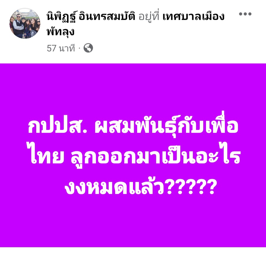 ต่อมาในวันเดียวกัน นายนิพิฏฐ์ อินทรสมบัติ สมาชิกพรรคพลังประชารัฐ ได้โพสต์ข้อความผ่านทางเฟซบุ๊ก ระบุว่า กปปส.ผสมพันธุ์กับเพื่อไทย ลูกออกมาเป็นอะไร งงหมดแล้ว?????