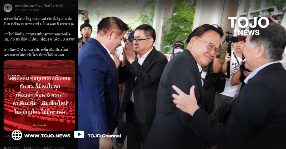 ผู้สื่อข่าวโตโจ้นิวส์รายงานว่า พรรคเพื่อไทยทวิตเตอร์ โพสต์ภาพข้อความ โดยระบุว่า…