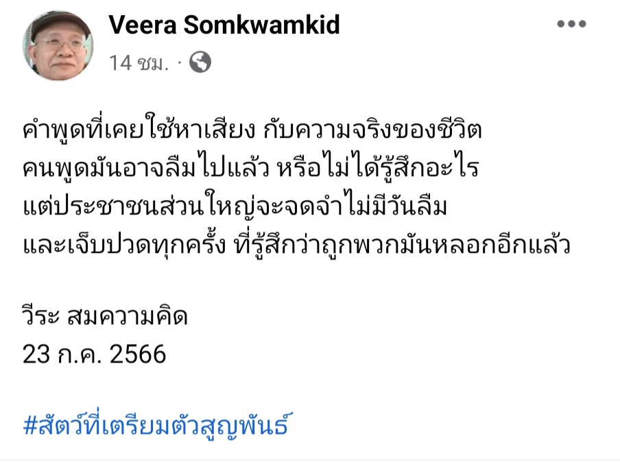 ผู้สื่อข่าวโตโจ้นิวส์รายงานว่า นายวีระ สมความคิด โพสต์ข้อความผ่านเฟซบุ๊ก ระบุว่า…