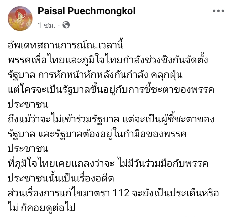 ส่วนเรื่องการแก้ไขมาตรา 112 จะยังเป็นประเด็นหรือไม่ ก็คอยดูต่อไป